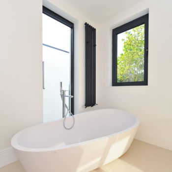 The lower ground floor cuts back into the existing bank creating a semi-basement with a rear light-well. The front elevation opens up to the front garden. At this level the owner chose to create a further family room rather than use the space as a gym as originally intended – but exemplifies the versatility of the design throughout the build.